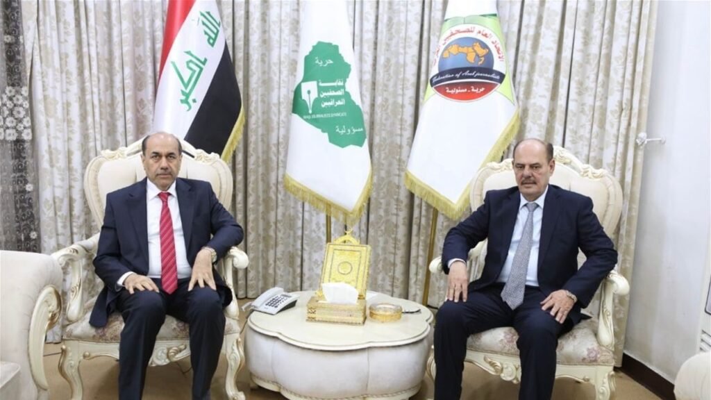 وذكر بيان لوزارة الثقافة، ورد لـ كربلاء 24، أن “وكيل وزارة الثقافة والسياحة والآثار قاسم طاهر السوداني زار نقابة الصحفيين العراقيين والتقى خلالها نقيب الصحفيين مؤيد اللامي، وجرى خلال الزيارة بحث القضايا الصحفية والإعلامية والثقافية والتعاون المشترك بين النقابة والوزارة”.