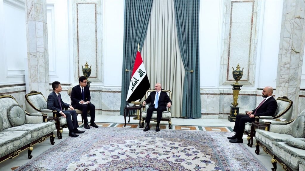 جاء ذلك خلال استقبال الرئيس, اليوم السبت 25 نيسان 2026 في قصر بغداد، السفير الصيني لدى العراق تسوي وي الذي نقل إلى الرئيس رسالة الرئيس الصيني والتي أشار خلالها إلى