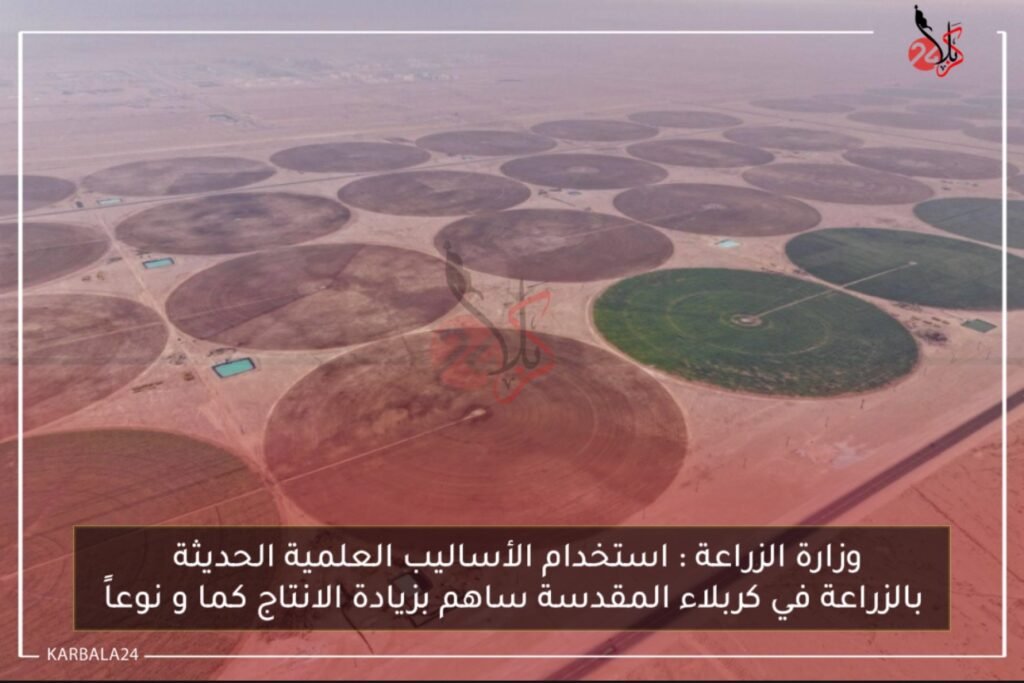 أوضحت وزارة الزراعة عن تميّزْ المشاريع الزراعية في محافظة كربلاء المقدسة باستخدام الأساليب العلمية الحديثة بالزراعة و الذي بدوره ساهم بزيادة الانتاج كما و نوعاً و منها مشروع مدينة كربلاء الزراعية الذي يتميز بالإنتاج الزراعي والداجني المتكامل ، إذ يعد بالمراتب المتقدمة بإستخدام التقنيات والتكنولوجيا المتطورة ( المرشات المحورية) وتحويل الأراضي الصحراوية إلى واحةٍ منتجةٍ .