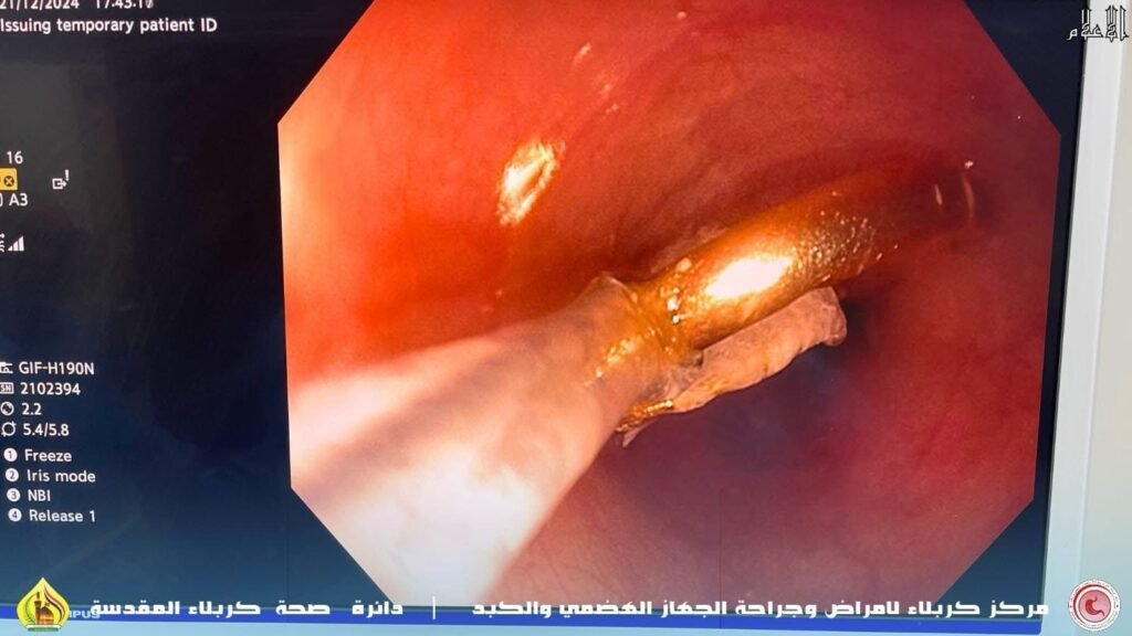 نجح طاقم طبي وصحي مُختص في مركز كربلاء لأمراض وجراحة الجهاز الهضمي والكبد في إستخراج حلق ذهب من مريء طفل يبلغ من العمر 5 أشهر فقط خلال عملية لم تستغرق سوى 10 دقائق . وقال رئيس الطاقم ، إختصاصي دقيق بأمراض الجهاز الهضمي والكبد ، الدكتور أكرم الجابري ، أن ” الطفل قَدِم إلى طوارئ المدينة الطبية برفقة ذويه بحدود الساعة السادسة من مساء اليوم السبت ، وهو يشكو إبتلاع جسم غريب كان قد عُلقِّ في منطقة المريء ، مما سبّب له غصة وألم ، حينها قمنا بإجراء عملية عاجلة بالمنظار لإزالة الجسم الغريب وتبيّن إنها (حلق ذهب ) ، تكّللت بالنجاح دون حدوث مُضاعفات ، ليتم بعدها إرجاع الطفل الى الردهة بصحة جيدة ، وسط إشادة كبيرة من ذويه لمُستوى الخدمات المقدمة إليه ولسرعة الإستجابة “. وشارك في إجراء العملية ونجاحها ، طاقماً ضم طبيب التخدير ، الدكتور بهاء مهدي لفته ، وم .جامعي ، محمد خليل إبراهيم ، وتقني تخدير ، سلام حسين مجيد .