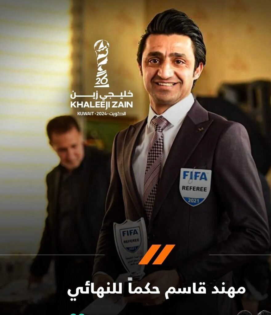 ختارت اللجنة المنظمة لخليجي 26، اليوم الخميس، الحكم العراقي مهند قاسم لقيادة المباراة النهائية لخليجي 26.