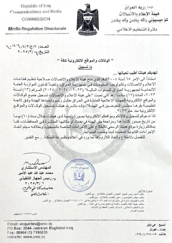 هيئة الإعلام والاتصالات تدعو الوكالات والمواقع الإلكترونية للتسجيل الرسمي خلال 60 يومًا