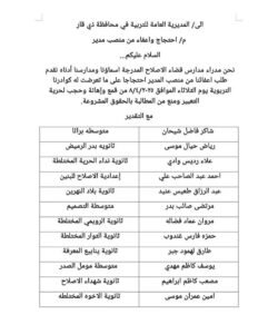 400 استقالة جماعية لمديري مدارس ذي قار احتجاجًا على قمعهم امس (وثائق)