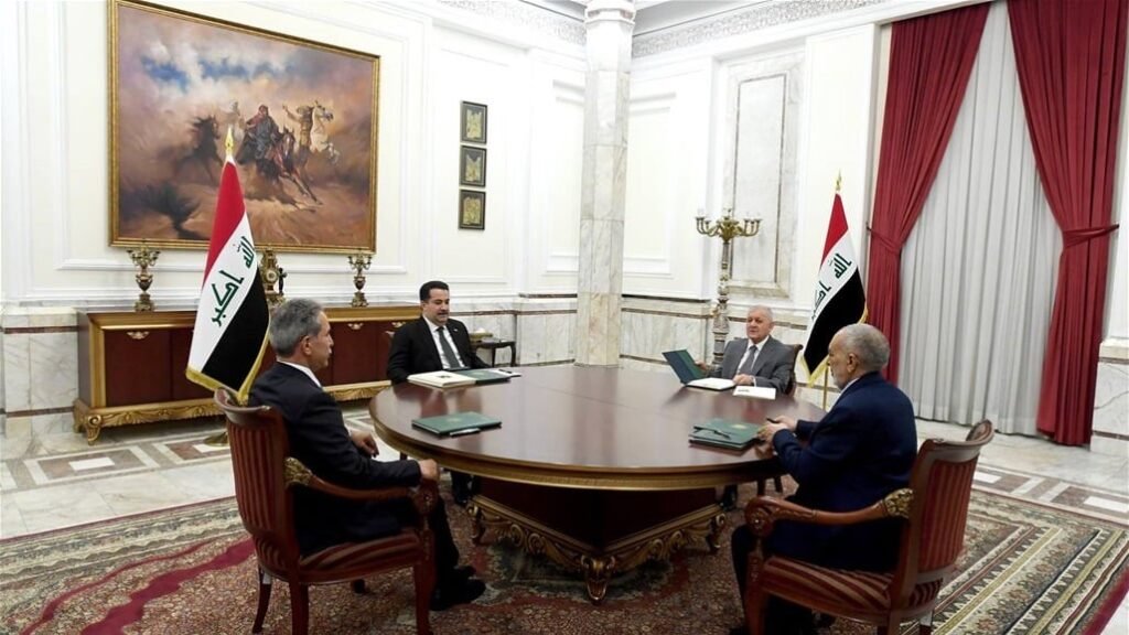 وذكر بيان للمكتب الإعلامي لرئاسة مجلس الوزراء، أنه “حضر رئيس مجلس الوزراء محمد شياع السوداني، اليوم الأحد، اجتماعاً للرئاسات، ضم رئيس الجمهورية عبد اللطيف جمال رشيد، ورئيس مجلس النواب محمود المشهداني، ورئيس مجلس القضاء الأعلى القاضي فائق زيدان”.