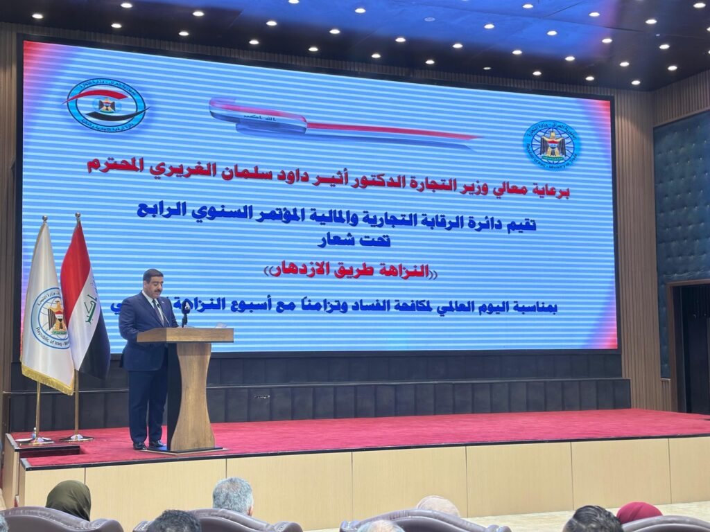 وشدد على “الدور المحوري للمواطن في دعم منظومة النزاهة من خلال الإبلاغ عن حالات الفساد أو التجاوز على المال العام، بما يعزز الشراكة بين المجتمع والمؤسسات الرقابية، ويسهم في ترسيخ الثقة المتبادلة ودعم جهود الدولة في إرساء مبادئ الحوكمة”، مشيرا الى أن “الوزارة ماضية في برامج التحول الإلكتروني، وسيتم الإعلان عن تحولٍ إلكتروني كبير في وزارة التجارة، وإطلاق برامج وخدمات لم تكن موجودة، من شأنها الحد من عمليات الفساد أو التسويف أو المماطلة”.